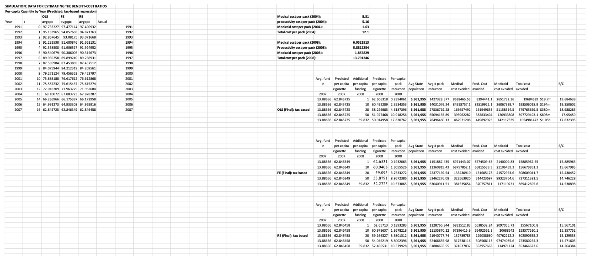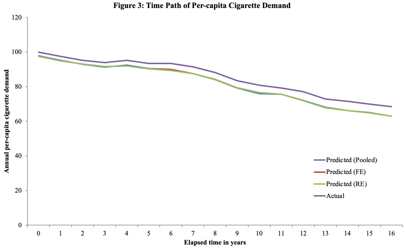 key insights ✧Results showed a significant negative elasticity between tax rates and per capita tobacco consumption, with stronger responses in states with historically higher baseline usage. Elasticity estimates confirmed that even moderate tax increases lead to meaningful declines in sales volume.